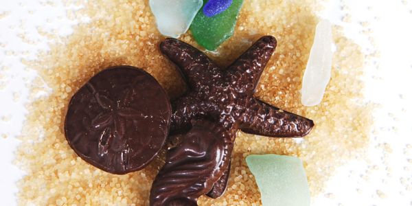 Simplicity. Inspired by the sea for your discriminating taste, a chocolatier’s choice mix of white, milk or dark imported, rich French solid chocolate starfish and seashells. These simple pleasures are packaged in bags of three chocolates set in a raw turbinado sugar sand and wrapped with Sirenetta’s satin bow